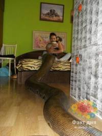 Иногда питомцы вырастают слишком крупными, как этот тигровый питон. | |